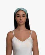 Pearlized mint colour vegan leather pleated headband. The pleated effect will allow you to arrange a different look with the headband as you wear, wider with very little gathering at the front, or scrunched together for a more narrow look. Elasticated back will make for a comfortable fitted headband. Make a statement with this day to evening glamorous headband, especially on not so great hair days!