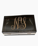 Crafted from the finest black Lucite, its transparent allure beckons, revealing a bespoke sparkle as your initials, delicately adorned in Swarovski crystals, transform it into a personalized emblem of style. Elevate your ensemble with this versatile design, a statement piece that adapts seamlessly to every occasion, akin to fine jewelry.