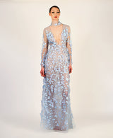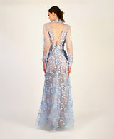 Step into a garden of elegance with the Provence Gown, featuring hand-applied 3D florals and a plunging neckline. The v-shaped back is elevated with delicate high-neck floral detailing, and adjustments can be made upon request for a tailored fit. Proudly made in Canada.