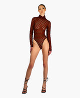Playful yet polished, the Naya Bodysuit features vibrant red polka dot mesh and a flattering high neckline. Made in Canada, it’s the perfect combination of fun and functional design.